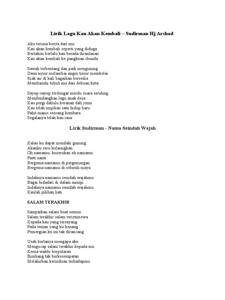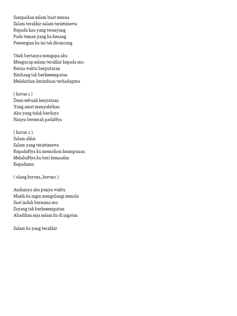 Lirik Lagu Salam Terakhir Sudirman Lirik Lagu Baik Pdf